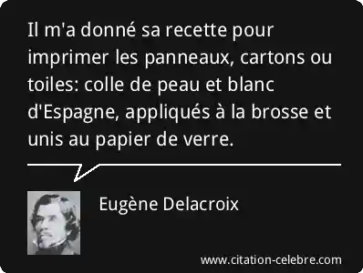 Il m'a donné sa recette pour imprimer les panneaux, cartons ou toiles: colle de peau et blanc d'Espagne, appliqués à la brosse et unis au papier de verre.