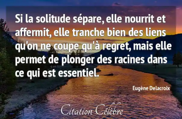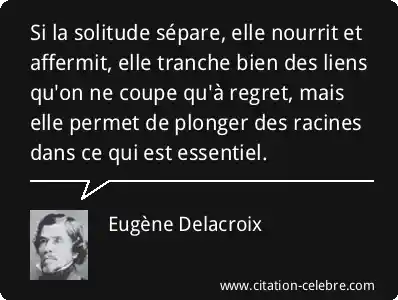 Si la solitude sépare, elle nourrit et affermit, elle tranche bien des liens qu'on ne coupe qu'à regret, mais elle permet de plonger des racines dans ce qui est essentiel.