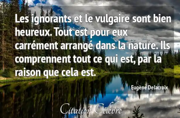 Les ignorants et le vulgaire sont bien heureux. Tout est pour eux carrément arrangé dans la nature. Ils comprennent tout ce qui est, par la raison que cela est.
