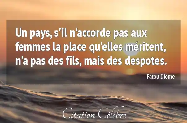 Un pays, s'il n'accorde pas aux femmes la place qu'elles méritent, n'a pas des fils, mais des despotes.