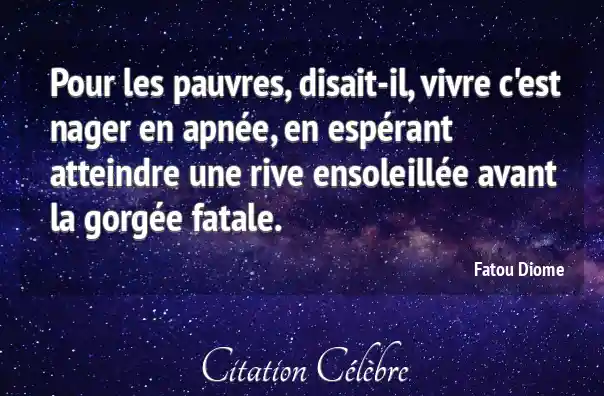 Pour les pauvres, disait-il, vivre c'est nager en apnée, en espérant atteindre une rive ensoleillée avant la gorgée fatale.
