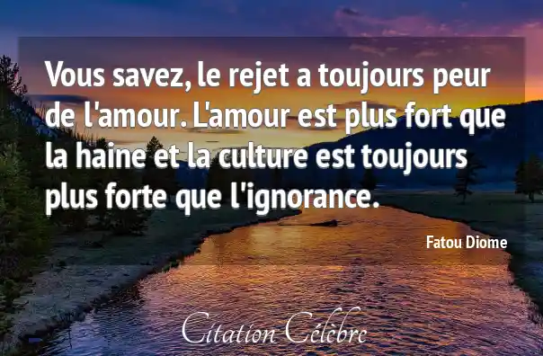 Vous savez, le rejet a toujours peur de l'amour. L'amour est plus fort que la haine et la culture est toujours plus forte que l'ignorance.