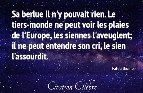 Sa berlue il n'y pouvait rien. Le tiers-monde ne peut voir les plaies de l'Europe, les siennes l'aveuglent; il ne peut entendre son cri, le sien l'assourdit.