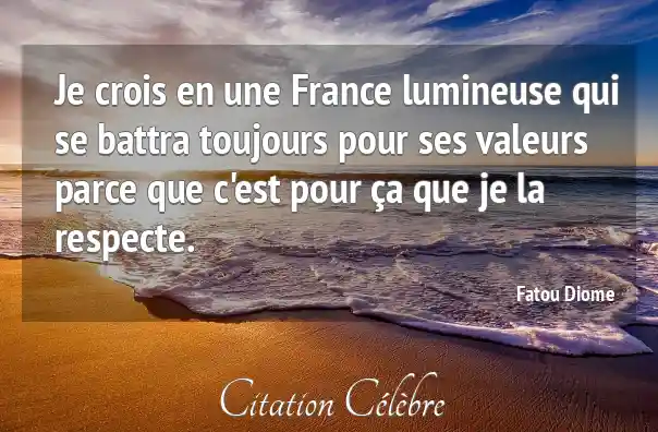 Je crois en une France lumineuse qui se battra toujours pour ses valeurs parce que c'est pour ça que je la respecte.