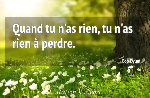 Quand tu n'as rien, tu n'as rien à perdre.