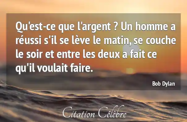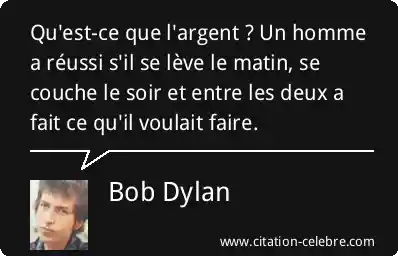 Qu'est-ce que l'argent ? Un homme a réussi s'il se lève le matin, se couche le soir et entre les deux a fait ce qu'il voulait faire.