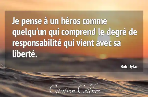 Je pense à un héros comme quelqu'un qui comprend le degré de responsabilité qui vient avec sa liberté.