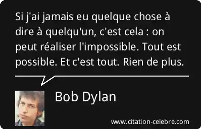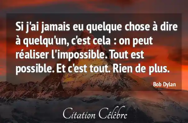 Si j'ai jamais eu quelque chose à dire à quelqu'un, c'est cela : on peut réaliser l'impossible. Tout est possible. Et c'est tout. Rien de plus.
