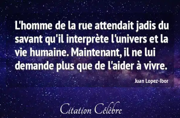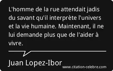 L'homme de la rue attendait jadis du savant qu'il interprète l'univers et la vie humaine. Maintenant, il ne lui demande plus que de l'aider à vivre.