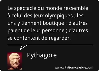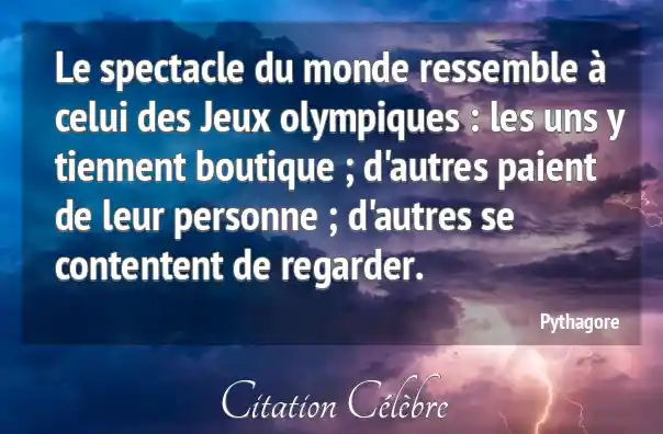 Le spectacle du monde ressemble à celui des Jeux olympiques : les uns y tiennent boutique ; d'autres paient de leur personne ; d'autres se contentent de regarder.