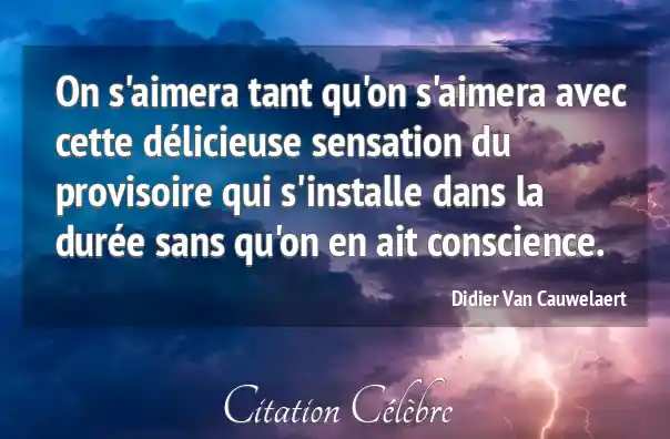 On s'aimera tant qu'on s'aimera avec cette délicieuse sensation du provisoire qui s'installe dans la durée sans qu'on en ait conscience.
