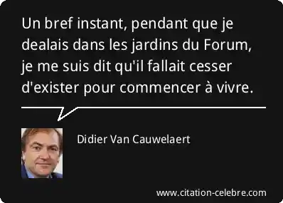 Un bref instant, pendant que je dealais dans les jardins du Forum, je me suis dit qu'il fallait cesser d'exister pour commencer à vivre.