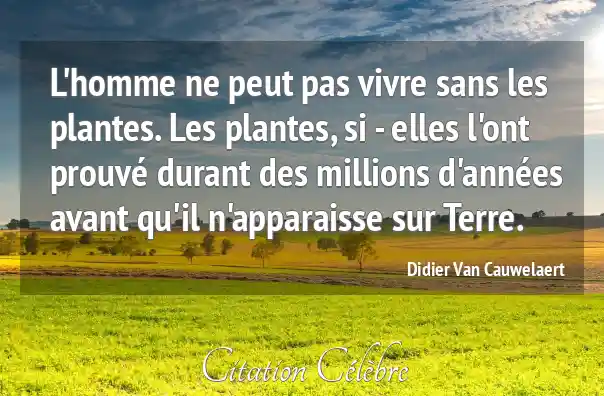 L'homme ne peut pas vivre sans les plantes. Les plantes, si - elles l'ont prouvé durant des millions d'années avant qu'il n'apparaisse sur Terre.
