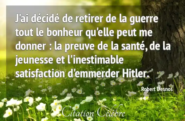 J'ai décidé de retirer de la guerre tout le bonheur qu'elle peut me donner : la preuve de la santé, de la jeunesse et l'inestimable satisfaction d'emmerder Hitler.