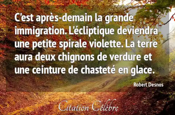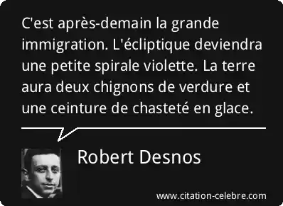 C'est après-demain la grande immigration. L'écliptique deviendra une petite spirale violette. La terre aura deux chignons de verdure et une ceinture de chasteté en glace.