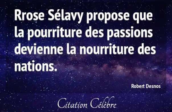 Rrose Sélavy propose que la pourriture des passions devienne la nourriture des nations.
