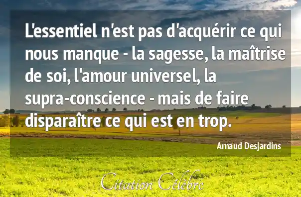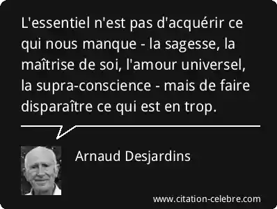 L'essentiel n'est pas d'acquérir ce qui nous manque - la sagesse, la maîtrise de soi, l'amour universel, la supra-conscience - mais de faire disparaître ce qui est en trop.