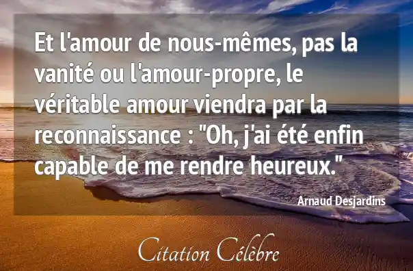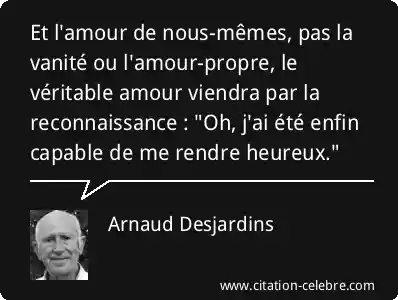 Et l'amour de nous-mêmes, pas la vanité ou l'amour-propre, le véritable amour viendra par la reconnaissance : "Oh, j'ai été enfin capable de me rendre heureux."