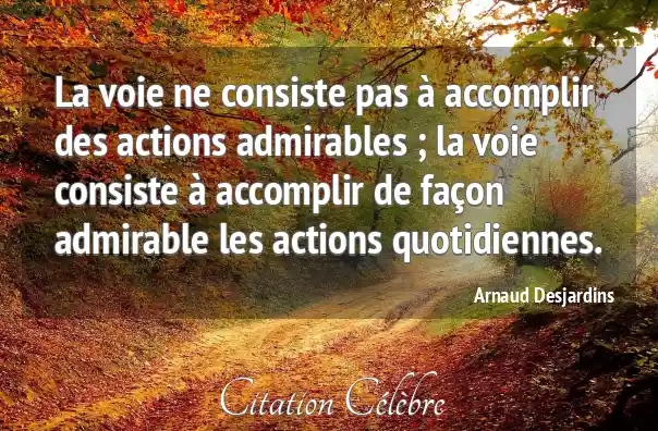 La voie ne consiste pas à accomplir des actions admirables ; la voie consiste à accomplir de façon admirable les actions quotidiennes.