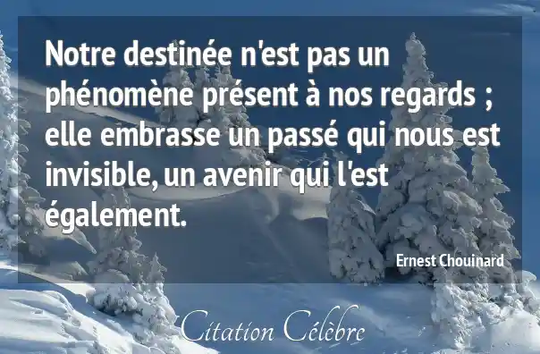 Notre destinée n'est pas un phénomène présent à nos regards ; elle embrasse un passé qui nous est invisible, un avenir qui l'est également.