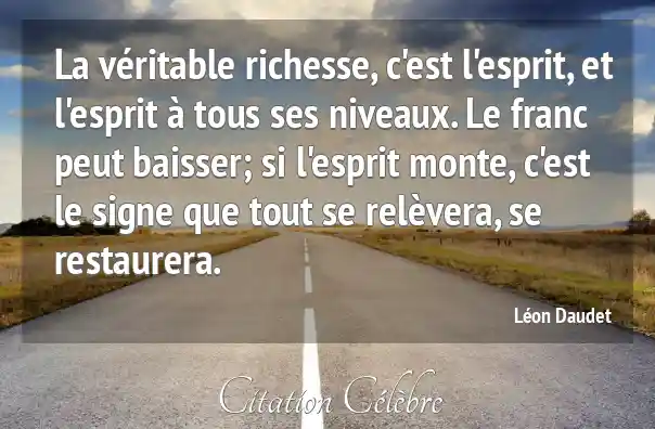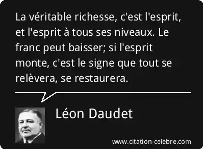 La véritable richesse, c'est l'esprit, et l'esprit à tous ses niveaux. Le franc peut baisser; si l'esprit monte, c'est le signe que tout se relèvera, se restaurera.