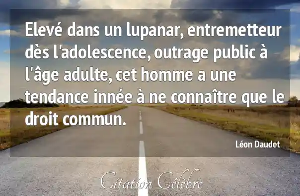 Elevé dans un lupanar, entremetteur dès l'adolescence, outrage public à l'âge adulte, cet homme a une tendance innée à ne connaître que le droit commun.