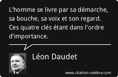 L'homme se livre par sa démarche, sa bouche, sa voix et son regard.Ces quatre clés étant dans l'ordre d'importance.