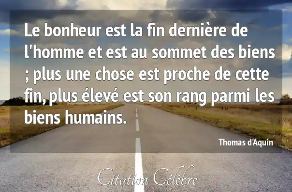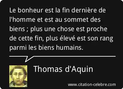 Le bonheur est la fin dernière de l'homme et est au sommet des biens ; plus une chose est proche de cette fin, plus élevé est son rang parmi les biens humains.
