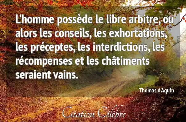 L'homme possède le libre arbitre, ou alors les conseils, les exhortations, les préceptes, les interdictions, les récompenses et les châtiments seraient vains.