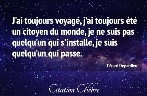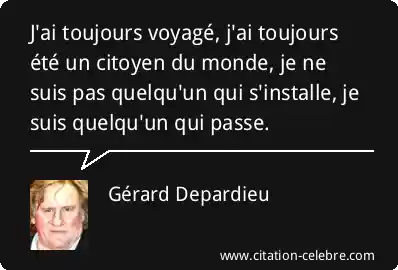 J'ai toujours voyagé, j'ai toujours été un citoyen du monde, je ne suis pas quelqu'un qui s'installe, je suis quelqu'un qui passe.