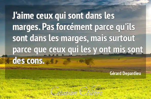 J'aime ceux qui sont dans les marges. Pas forcément parce qu'ils sont dans les marges, mais surtout parce que ceux qui les y ont mis sont des cons.