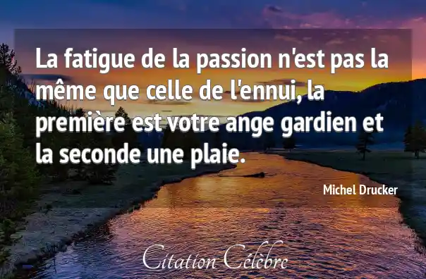 La fatigue de la passion n'est pas la même que celle de l'ennui, la première est votre ange gardien et la seconde une plaie.