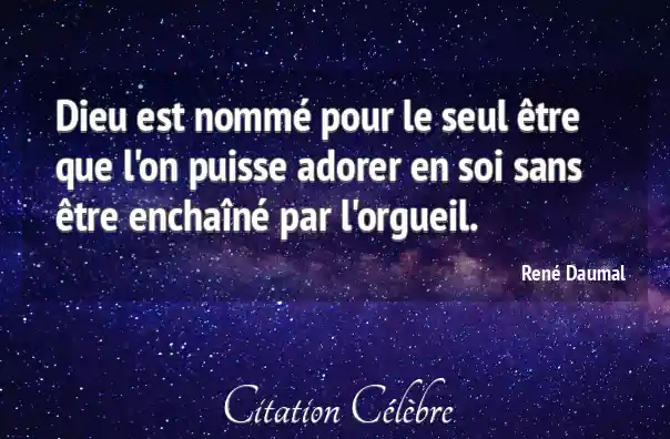 Dieu est nommé pour le seul être que l'on puisse adorer en soi sans être enchaîné par l'orgueil.