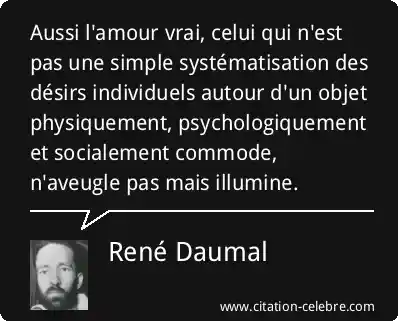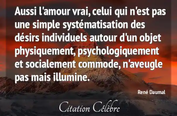 Aussi l'amour vrai, celui qui n'est pas une simple systématisation des désirs individuels autour d'un objet physiquement, psychologiquement et socialement commode, n'aveugle pas mais illumine.