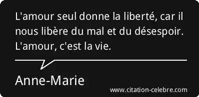 L'amour seul donne la liberté, car il nous libère du mal et du désespoir. L'amour, c'est la vie.