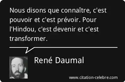 Nous disons que connaître, c'est pouvoir et c'est prévoir. Pour l'Hindou, c'est devenir et c'est transformer.
