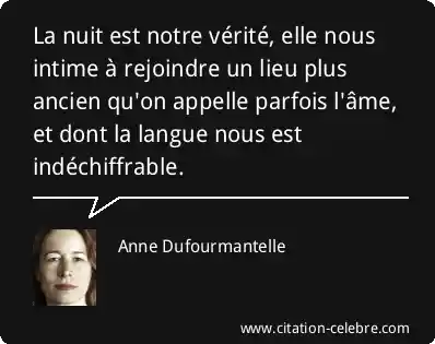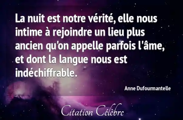 La nuit est notre vérité, elle nous intime à rejoindre un lieu plus ancien qu'on appelle parfois l'âme, et dont la langue nous est indéchiffrable.