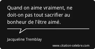 Quand on aime vraiment, ne doit-on pas tout sacrifier au bonheur de l'être aimé.