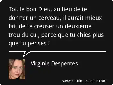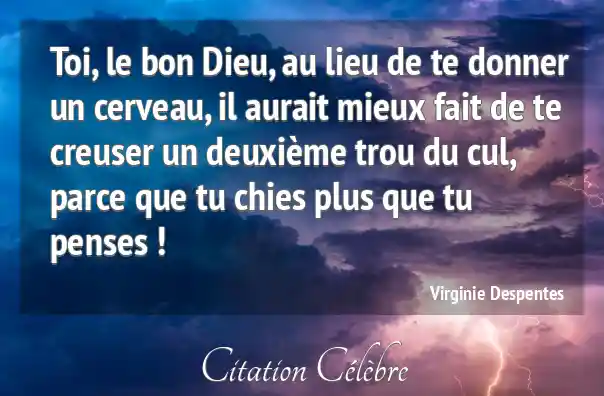 Toi, le bon Dieu, au lieu de te donner un cerveau, il aurait mieux fait de te creuser un deuxième trou du cul, parce que tu chies plus que tu penses !