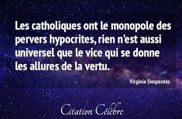 Les catholiques ont le monopole des pervers hypocrites, rien n'est aussi universel que le vice qui se donne les allures de la vertu.