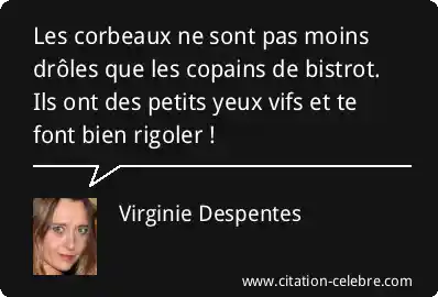 Les corbeaux ne sont pas moins drôles que les copains de bistrot. Ils ont des petits yeux vifs et te font bien rigoler !