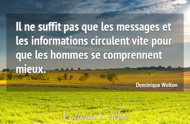 Il ne suffit pas que les messages et les informations circulent vite pour que les hommes se comprennent mieux.