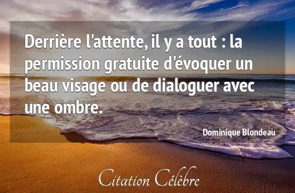 Derrière l'attente, il y a tout : la permission gratuite d'évoquer un beau visage ou de dialoguer avec une ombre.