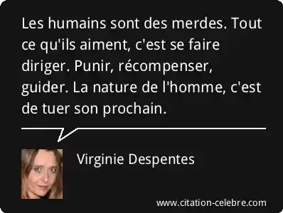 Les humains sont des merdes. Tout ce qu'ils aiment, c'est se faire diriger. Punir, récompenser, guider. La nature de l'homme, c'est de tuer son prochain.