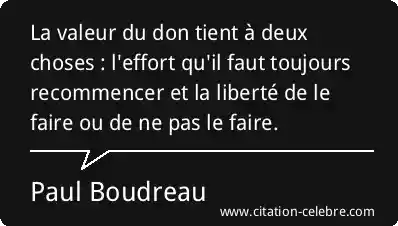 La valeur du don tient à deux choses : l'effort qu'il faut toujours recommencer et la liberté de le faire ou de ne pas le faire.
