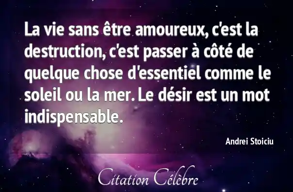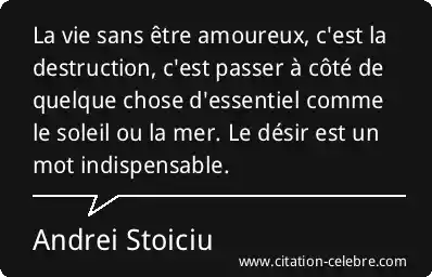 La vie sans être amoureux, c'est la destruction, c'est passer à côté de quelque chose d'essentiel comme le soleil ou la mer. Le désir est un mot indispensable.