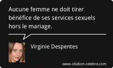 Aucune femme ne doit tirer bénéfice de ses services sexuels hors le mariage.