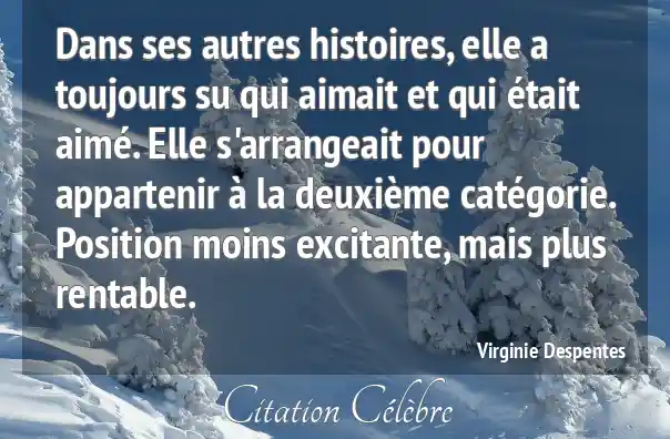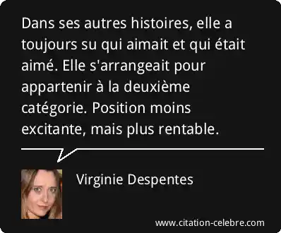 Dans ses autres histoires, elle a toujours su qui aimait et qui était aimé. Elle s'arrangeait pour appartenir à la deuxième catégorie. Position moins excitante, mais plus rentable.