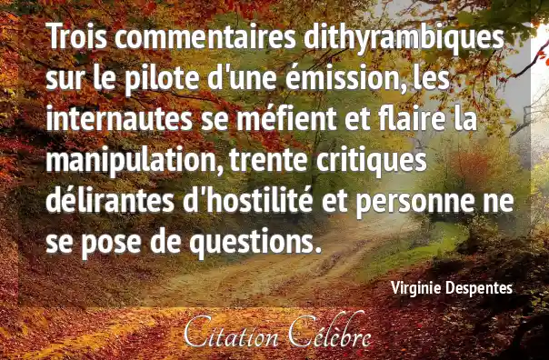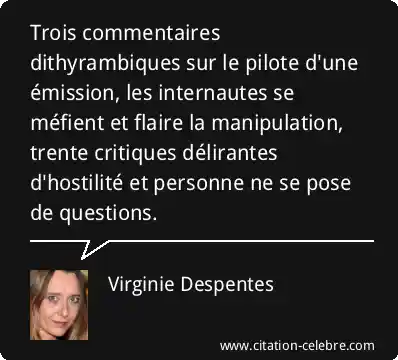 Trois commentaires dithyrambiques sur le pilote d'une émission, les internautes se méfient et flaire la manipulation, trente critiques délirantes d'hostilité et personne ne se pose de questions.