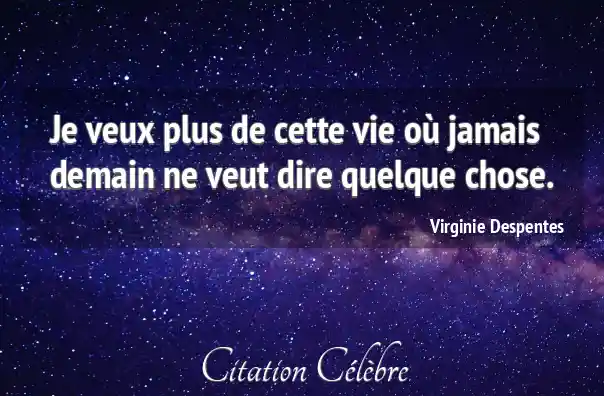Je veux plus de cette vie où jamais demain ne veut dire quelque chose.